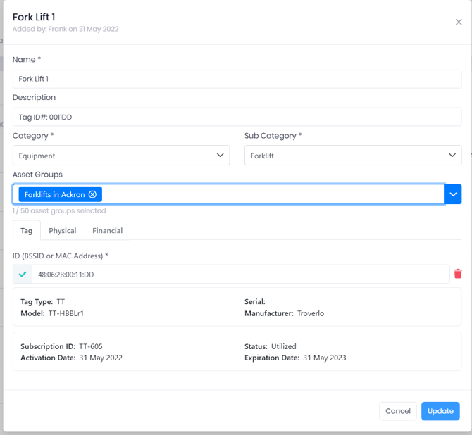 Asset Groups are "tags" or "labels" in Troverlo's portal to empower simplify searches.