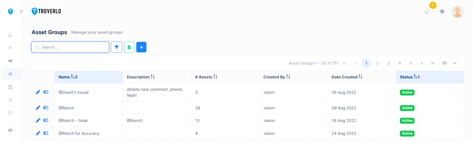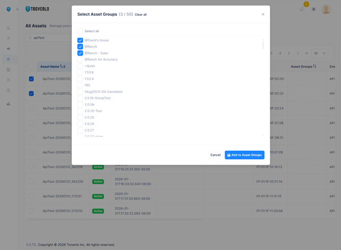 Asset Groups are "tags" or "labels" in the Troverlo portal that simplifies searches for multiple Assets.