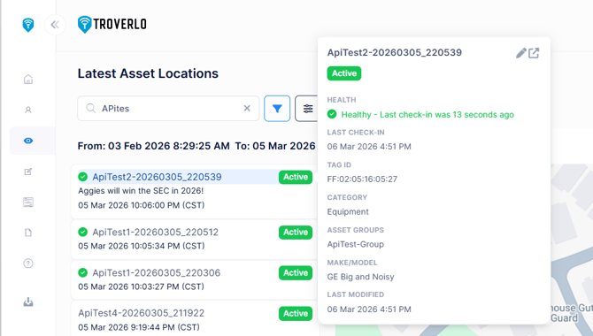 - Observations -> Latest Asset Location