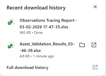 - The name of the file is "Observations Tracing Report - <date>.xlsx" - for example: