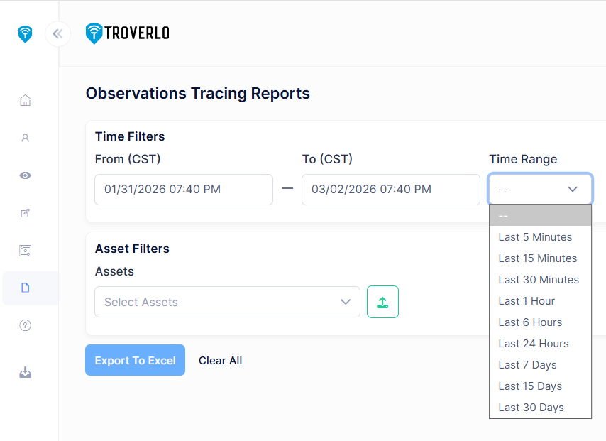 - Navigate to Reports -> Trace Report